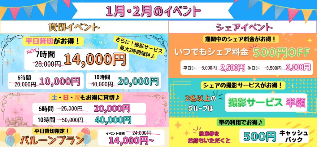 貸切もシェアもお得に遊べるイベント開催中🎶