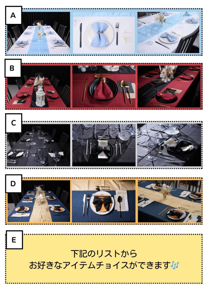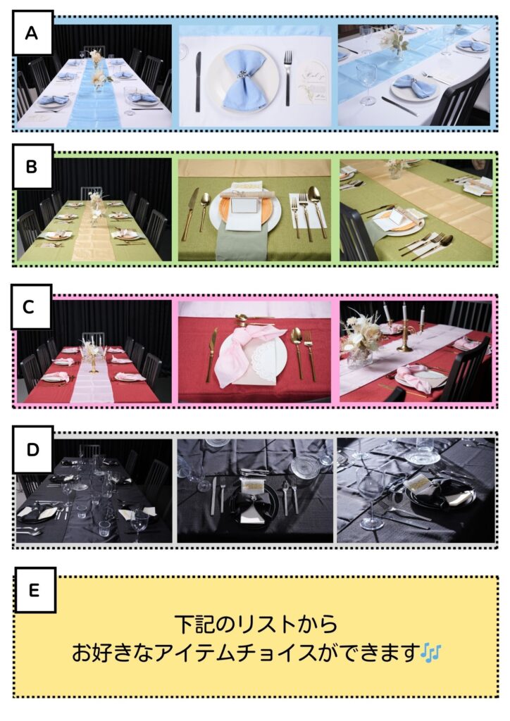 A〜Dのセット、またはEの中から好きなパターンを選べます🎶