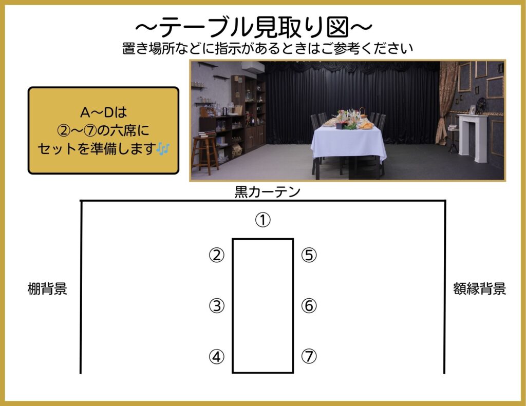 ご予約時に席とプレートセットをお伝えください。上記の見取り図をご参考ください。